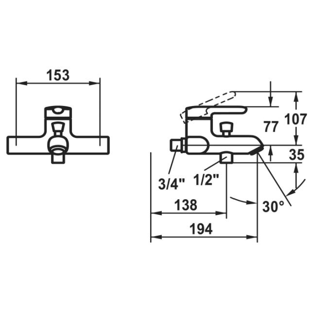"A195, AD153, senza raccordo e senza set doccia, cromato