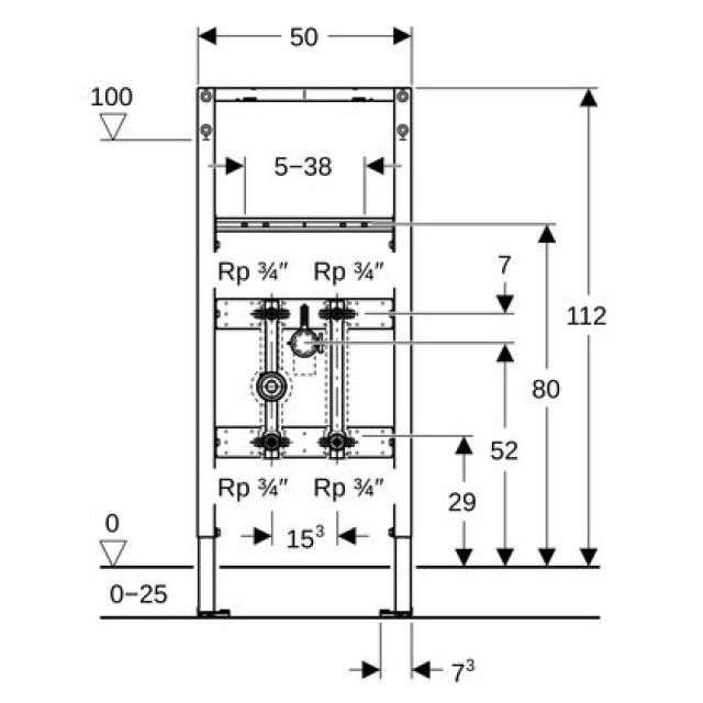 • Con piastra estraibile per fissaggio laterale sopra l'elemento su profili in metallo o legno o su montanti ad altezza locale Geberit Duofix
