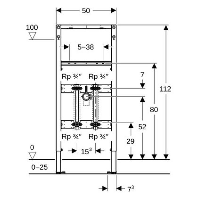 • Distanza dei fissaggi lavabo 5–38 cm